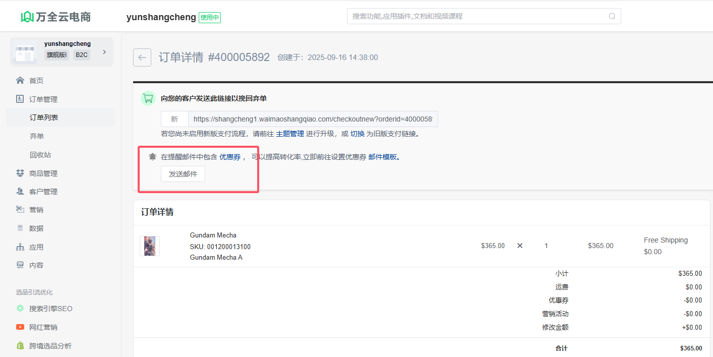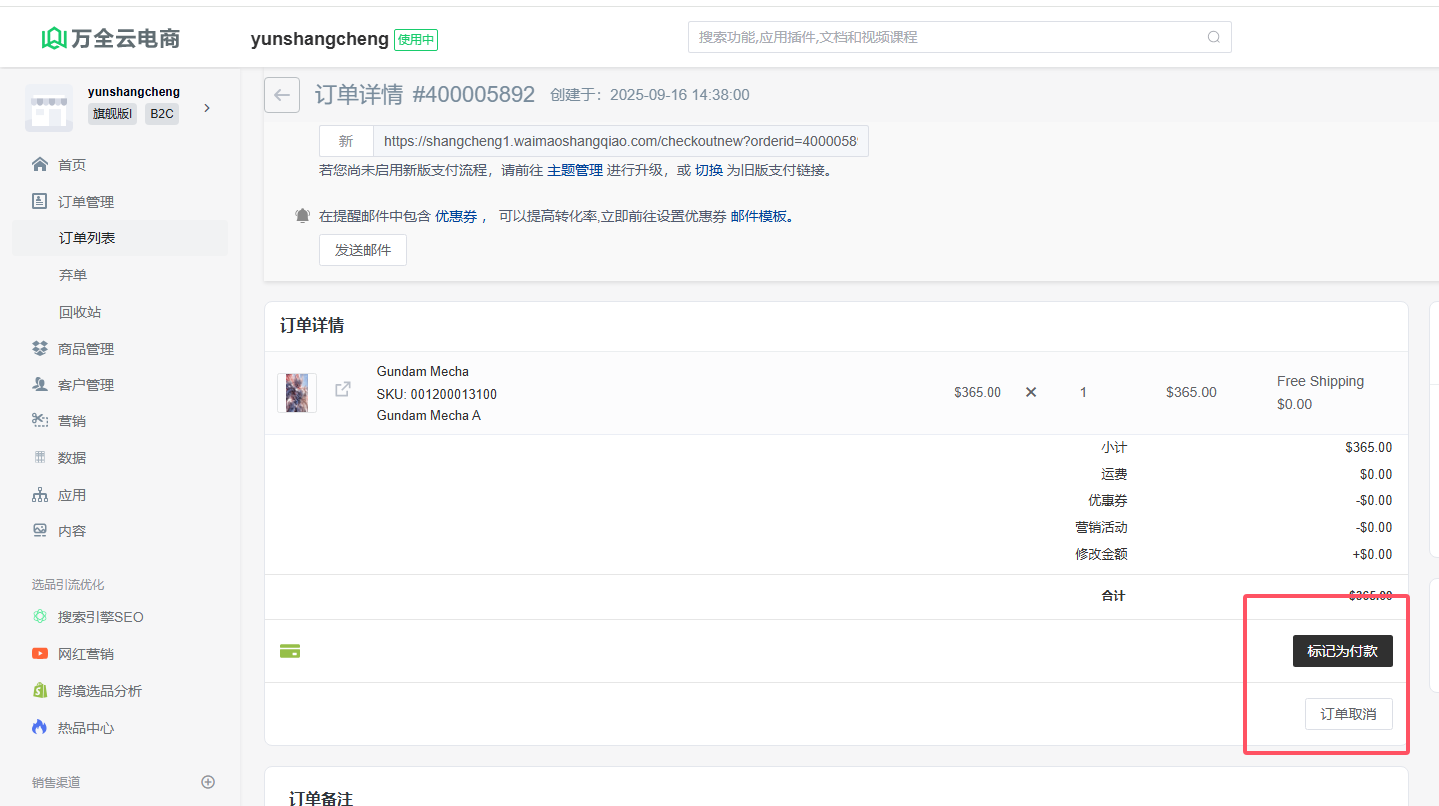 未付款的订单,您可以发送付款提醒,或者通过手动操作,标记为付款状态或订单取消: