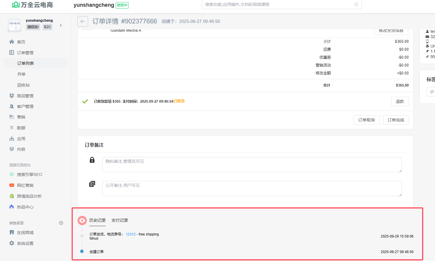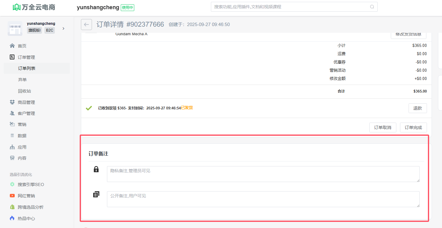 如果客户订单已经退款,您可以将订单状态标记为已退款: