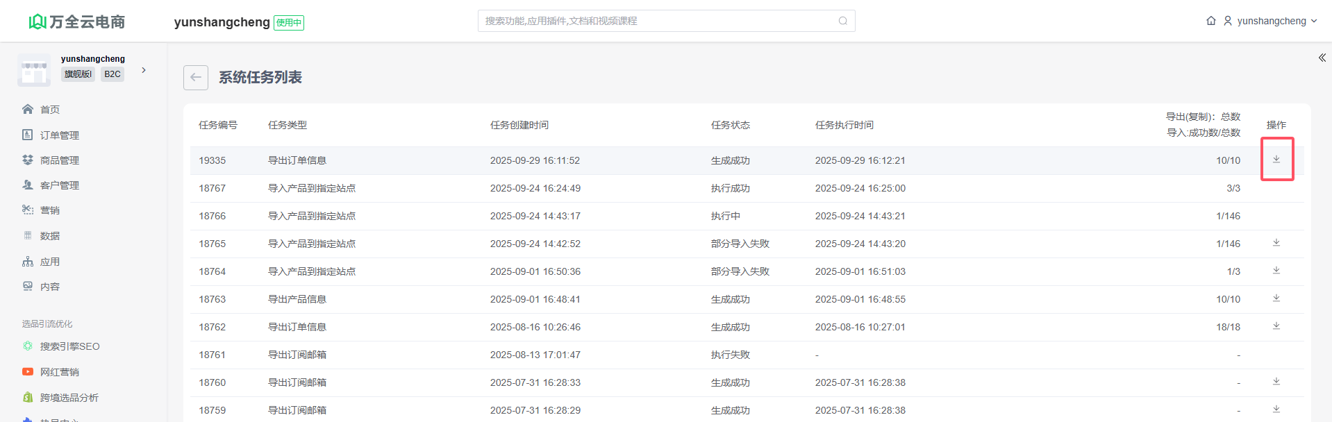 导出完成在系统设置-任务管理 等待任务完成,即可下载文档