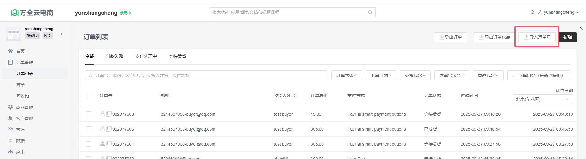 运单号导入功能允许为已收款未发货导入运单号信息,或为已发货的订单修改订单号。