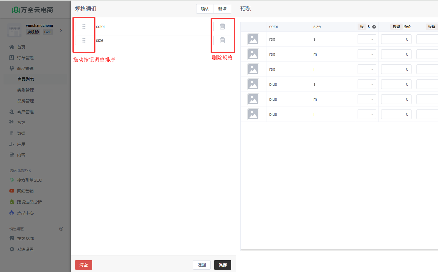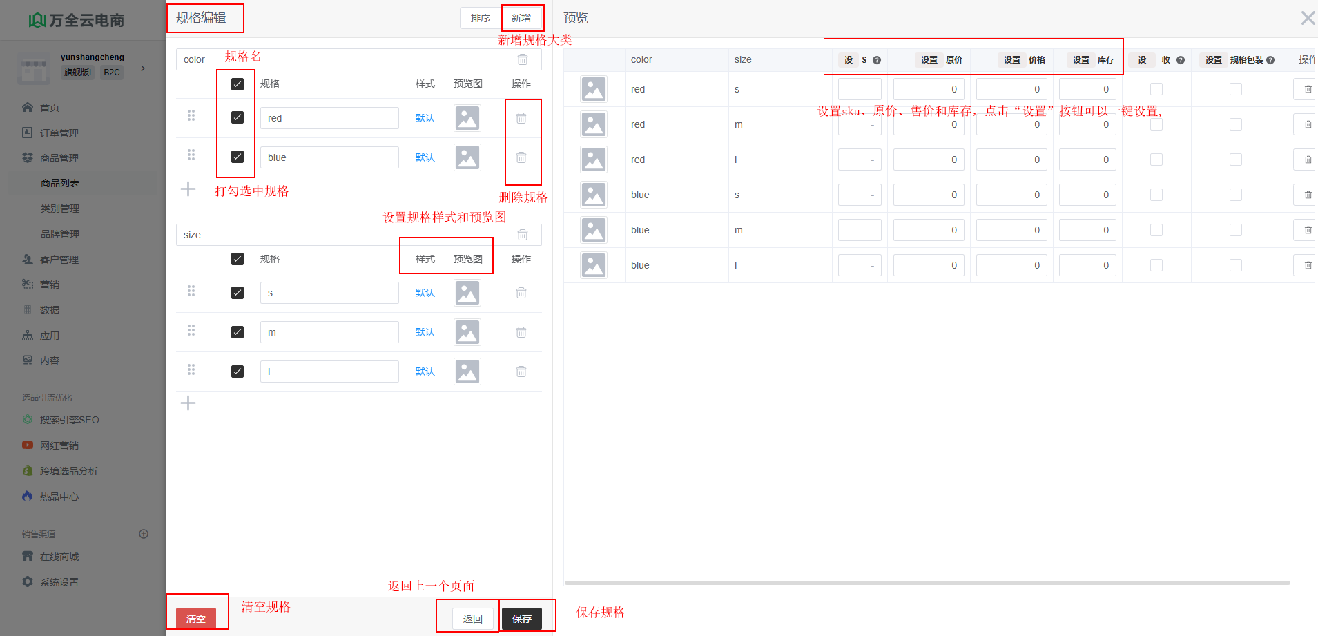 新增规格(新增属性与之相似)