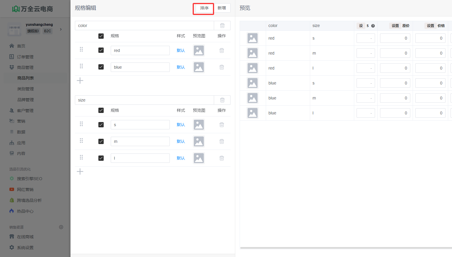 规格排序(属性排序与之相似)