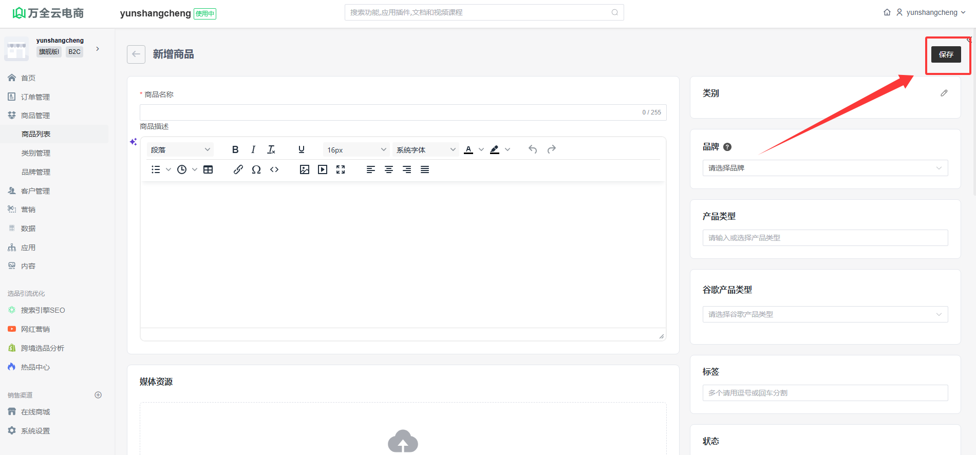 商品信息编辑好后,点击右上角“保存”按钮,保存商品信息。