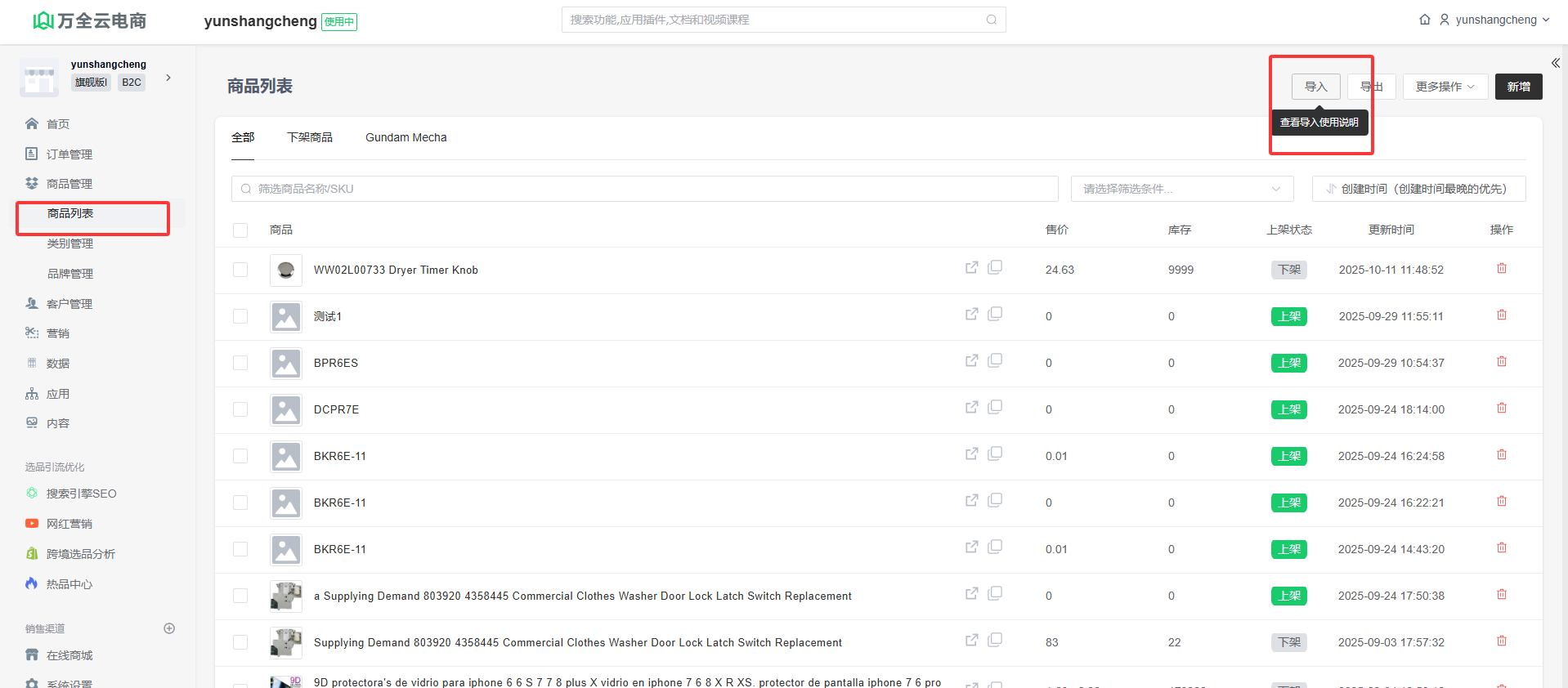 备注:目前支持Excel固定格式商品导入,导入请查看导入说明文档。