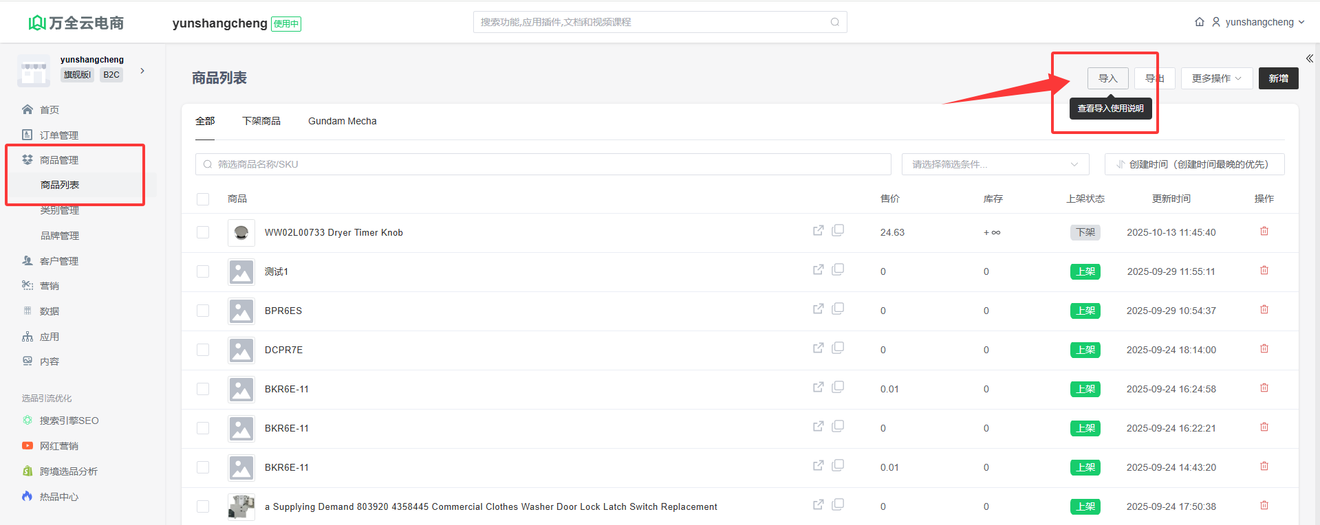 商品导入分为两种:一种是新增产品,一种是修改已有商品数据