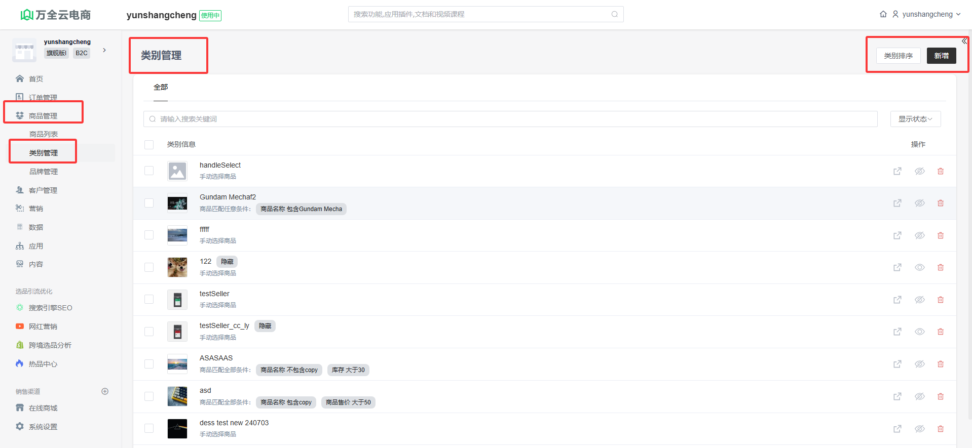 类别管理可以对商品进行类目划分,主要功能有新增类别、类别管理和类别排序