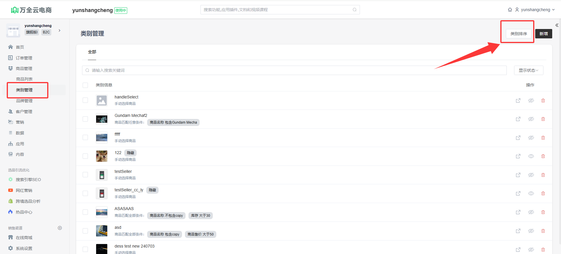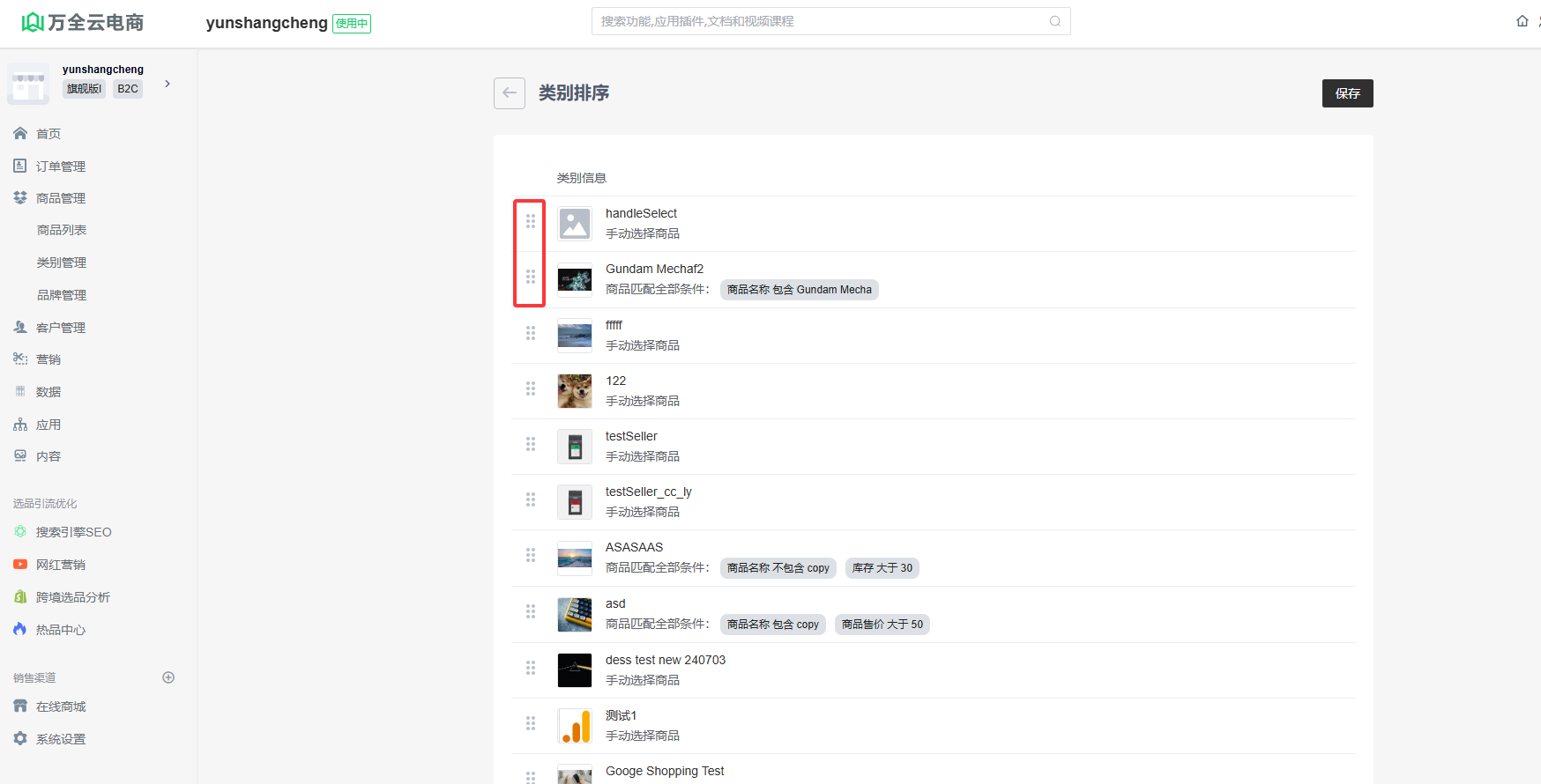 在“类别管理”页面,点击右上角“类别排序”进入类别排序页面,可通过拖动的形式改变类别的排序。