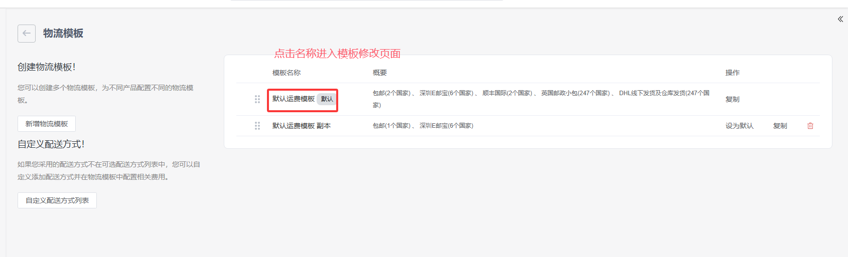 可对已经设置好的物流模板进行修改。(详情页面可参考新增物流模板)