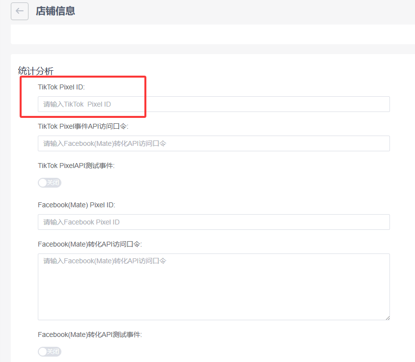 14、把复制的Pixel ID填入万全云商城后台-在线商城-店铺信息-TikTok Pixel ID处