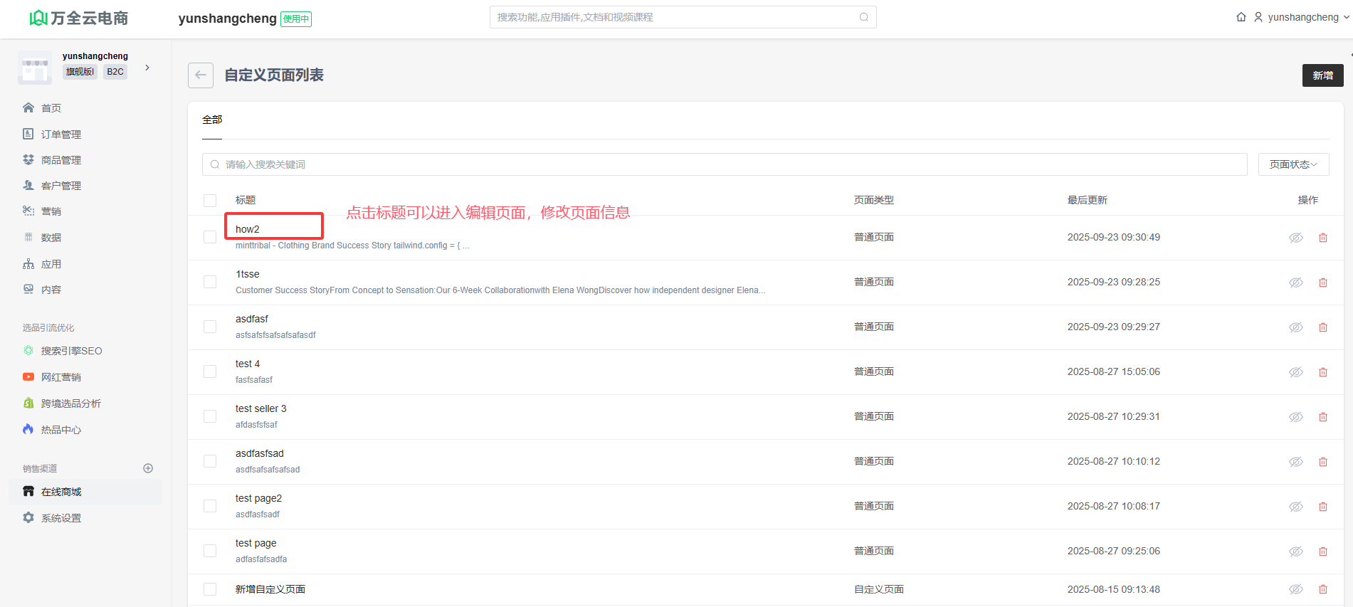 点击页面标题、进入编辑页面(可直接参考新增页面操作)