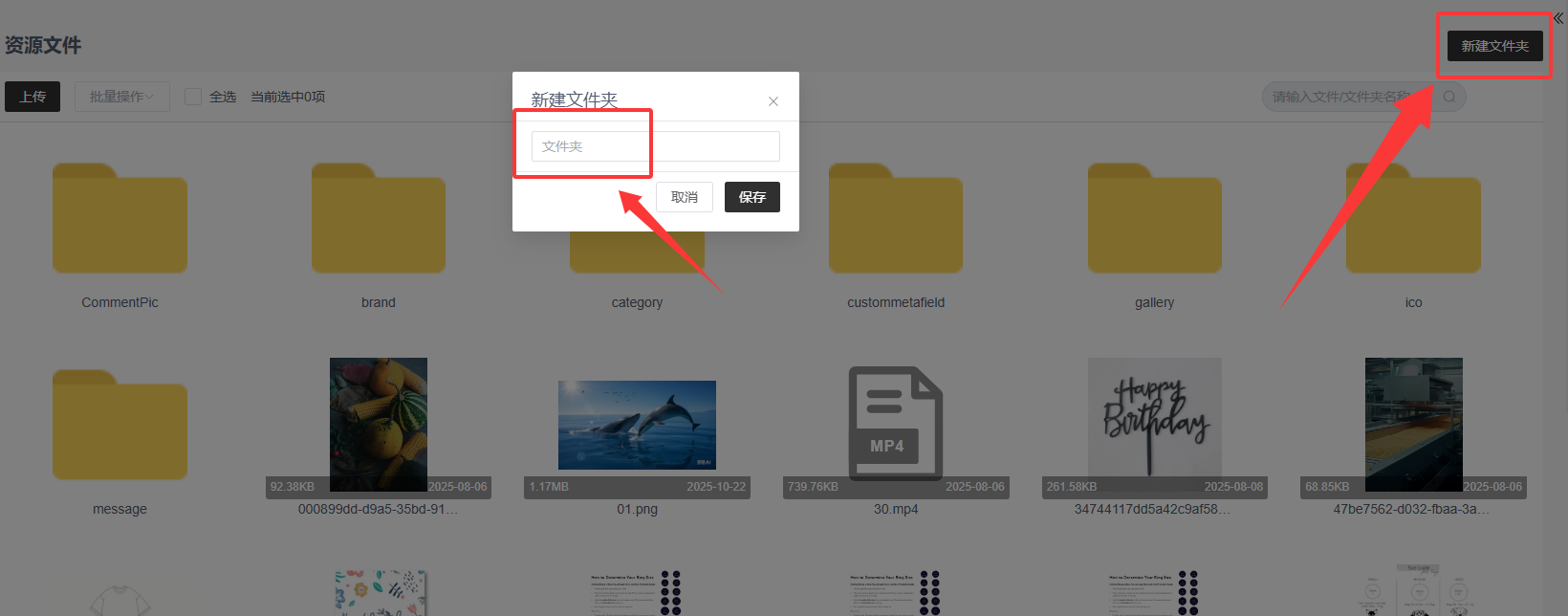 点击“新建文件夹”—填写文件夹名称—点击“保存”。
