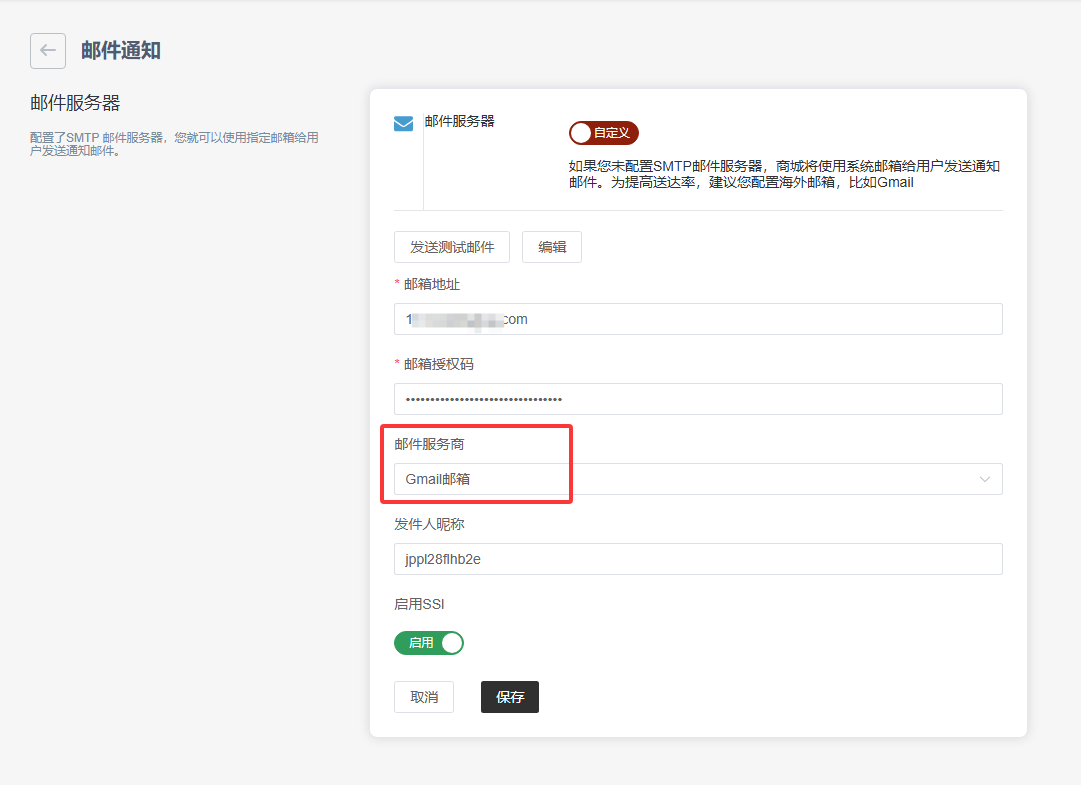 注:此处接收测试邮件的账号是开通表填写的邮箱,而非此处配置的邮箱账号。