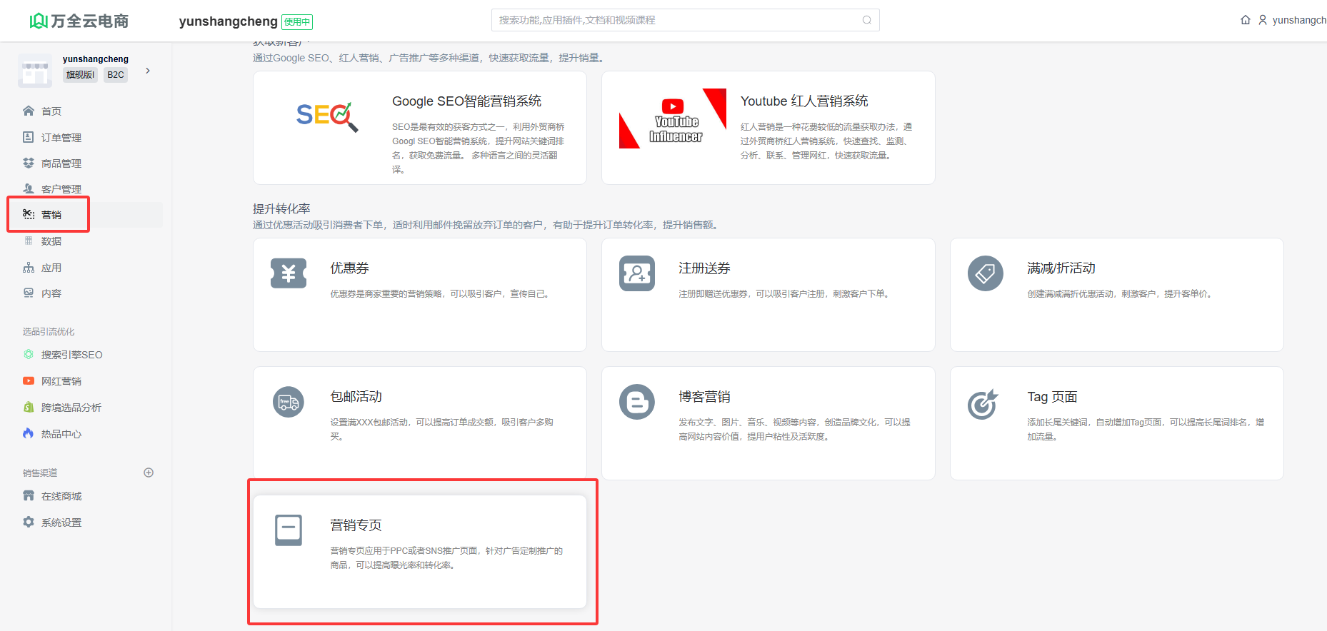 功能链接: 新增营销专页 编辑营销专页 管理营销专页