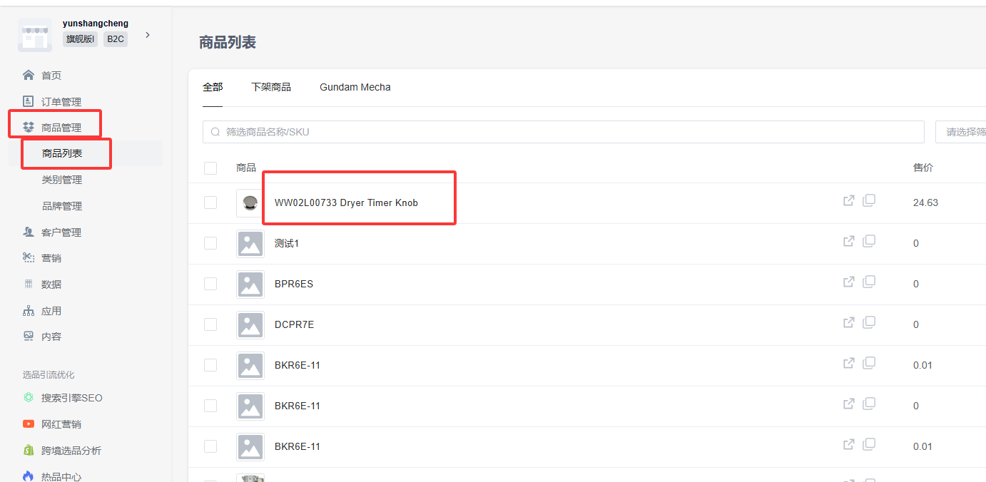 1、点击商品管理->商品列表进入商品列表页,点击商品名称进入商品详情页