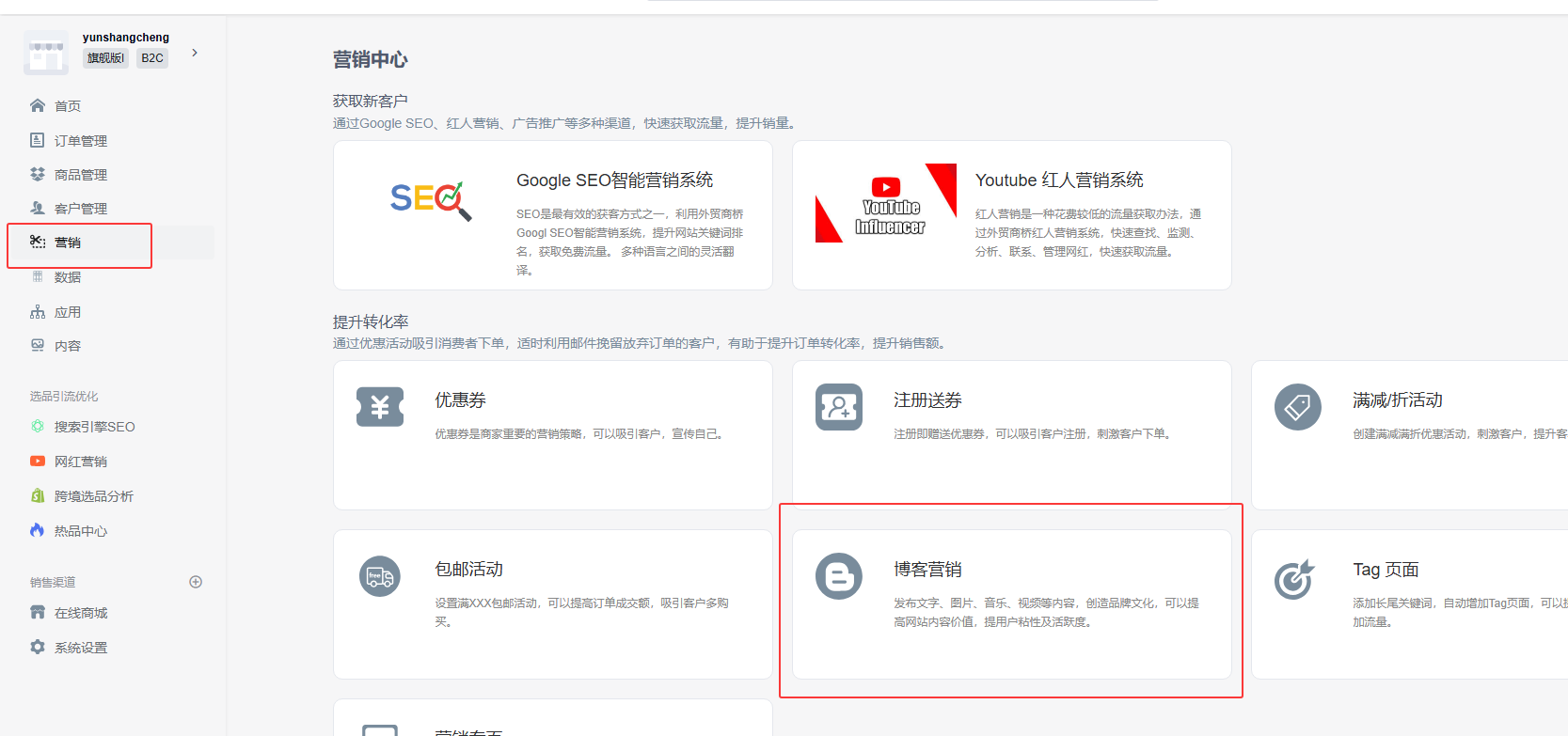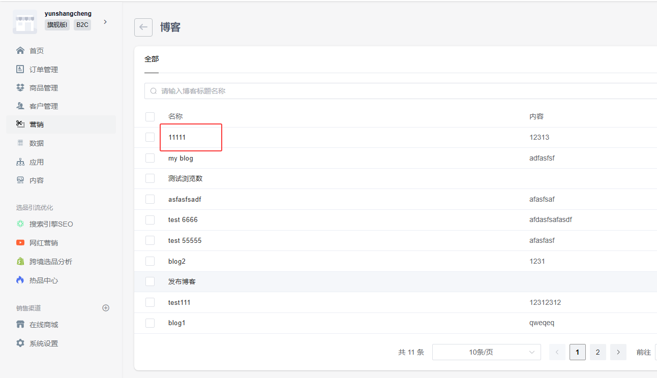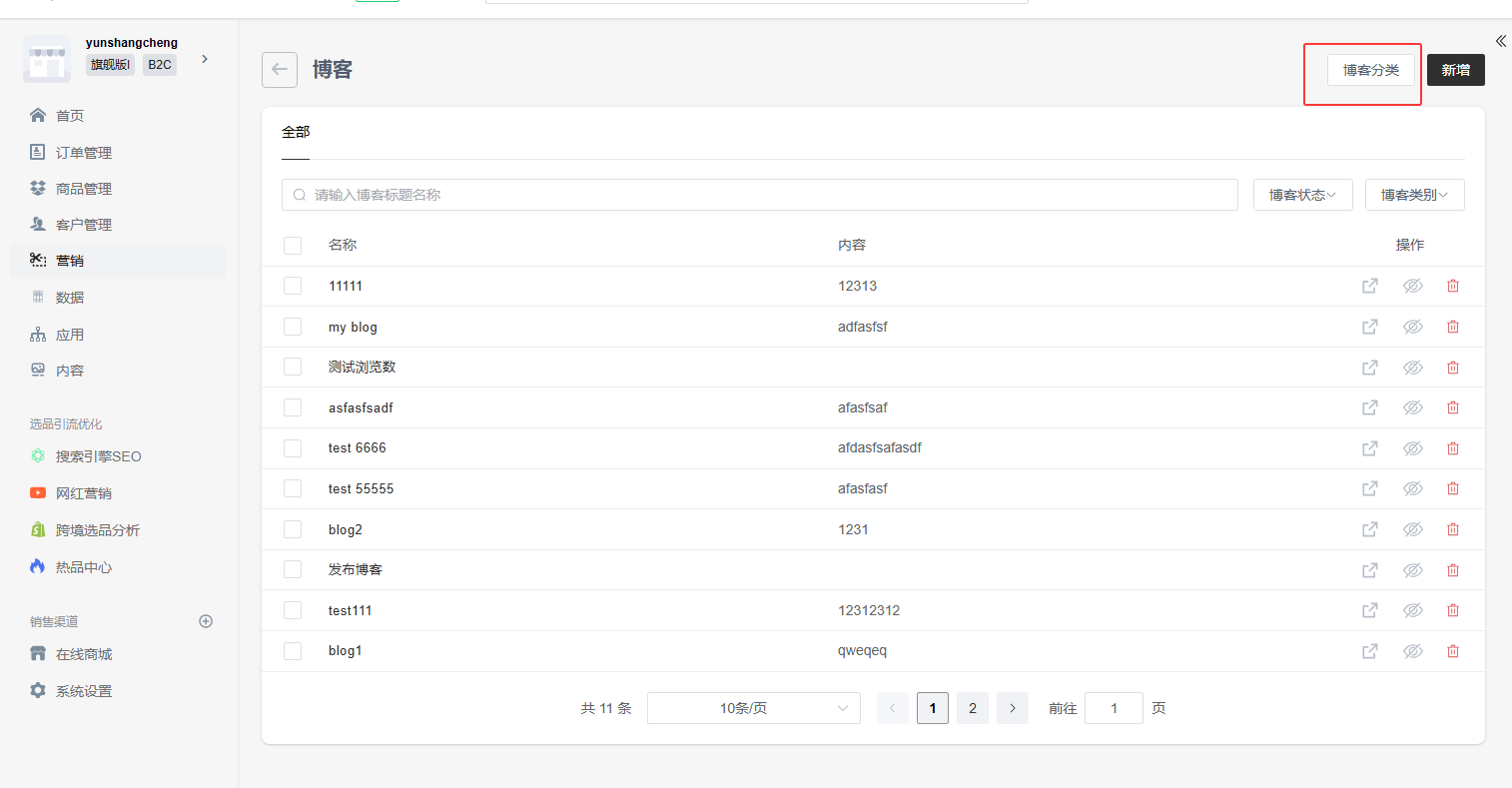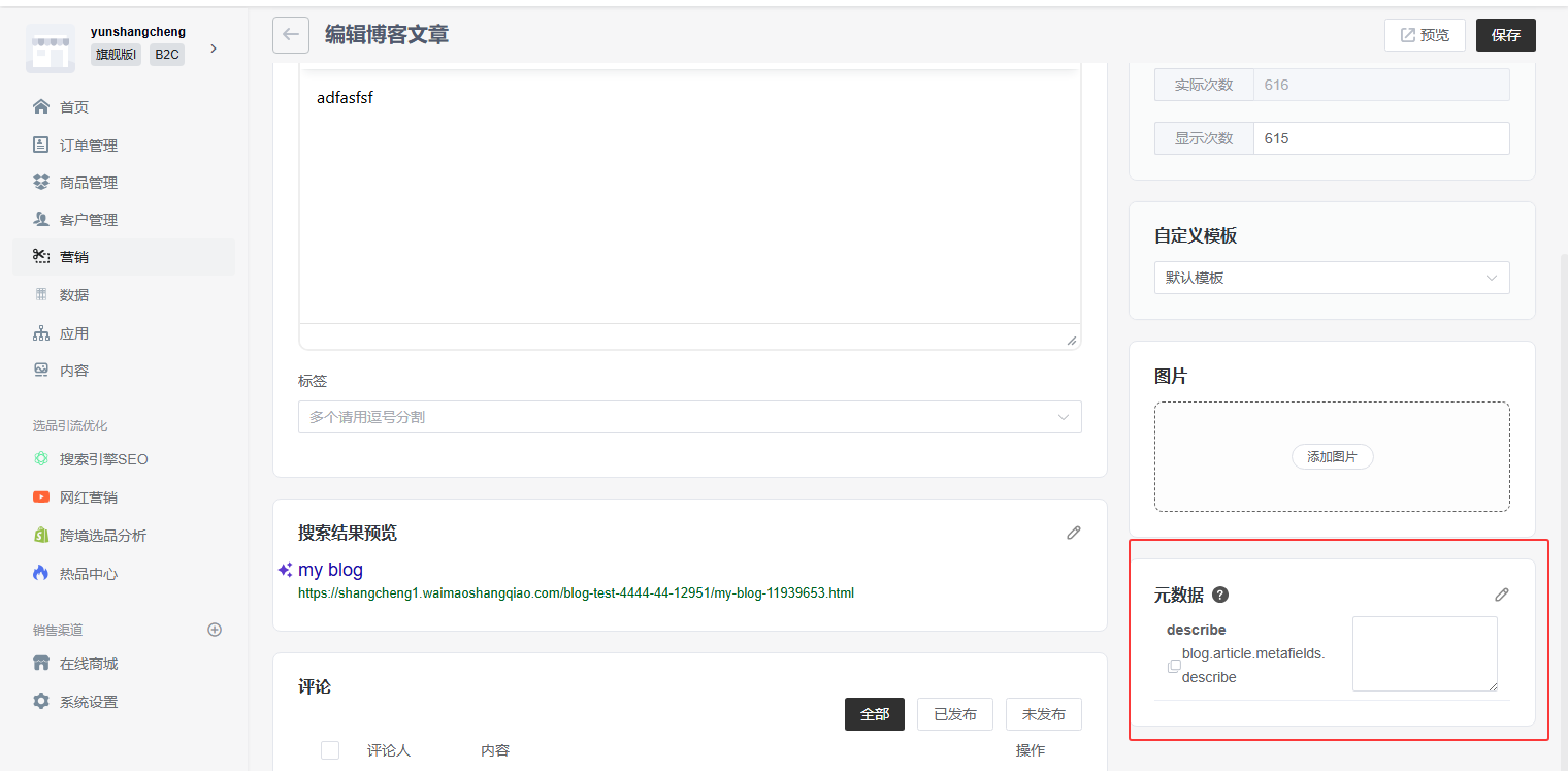 点击营销->博客营销->博客分类->选择博客分类->元字段