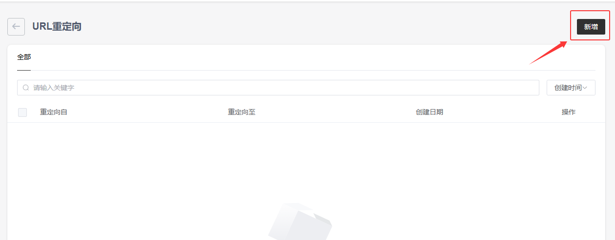 3.在重定向自中,输入您要重定向的旧URL。[重定向自]通常为已失效的店铺旧页面,旧页面内容已移至其他URL或已被删除。